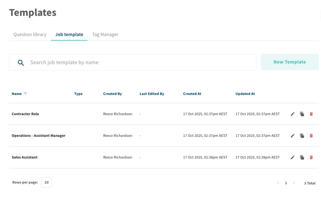 - Smarter Template Management: Templates now exist as their own category — no more confusion between active jobs and saved templates. They can’t be accidentally published, archived, or deleted like before.